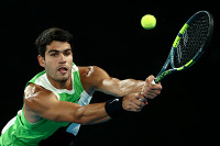 キャンプ初日を終えたヤクルトの山田。初日はこれまでの二塁ではなく、三塁の守備に入り、精力的に汗を流した=1日、沖縄県浦添市 【時事通信社】